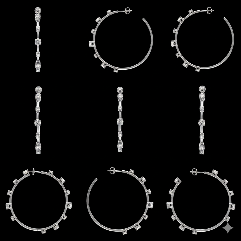 Each pair features lab-grown diamonds totaling 3.42 carats, showcasing FG color and VS+ clarity for remarkable sparkle, fire, and clarity. Expertly set in solid 14K white gold, with a substantial 10.70-gram gold weight, these earrings offer superior durability, balance, and a premium feel.