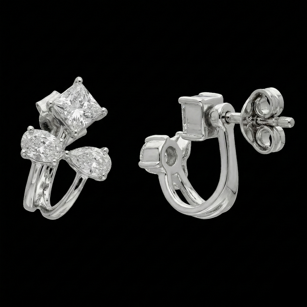 These earrings feature lab-grown diamonds totaling 1.15 carats, graded EF color and VS+ clarity for exceptional brightness, fire, and visual purity. Expertly set in solid 14K white gold, with a substantial 2.52-gram gold weight, they offer lasting durability paired with refined elegance.